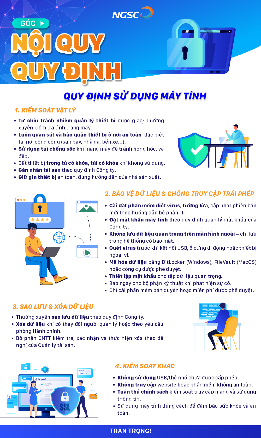 Các NGSCer thân mến,Máy tính là công cụ làm việc quan trọng và không thể thiếu của các CBNV – đồng thời cũng là tài sản và nguồn dữ liệu giá trị của Công ty.