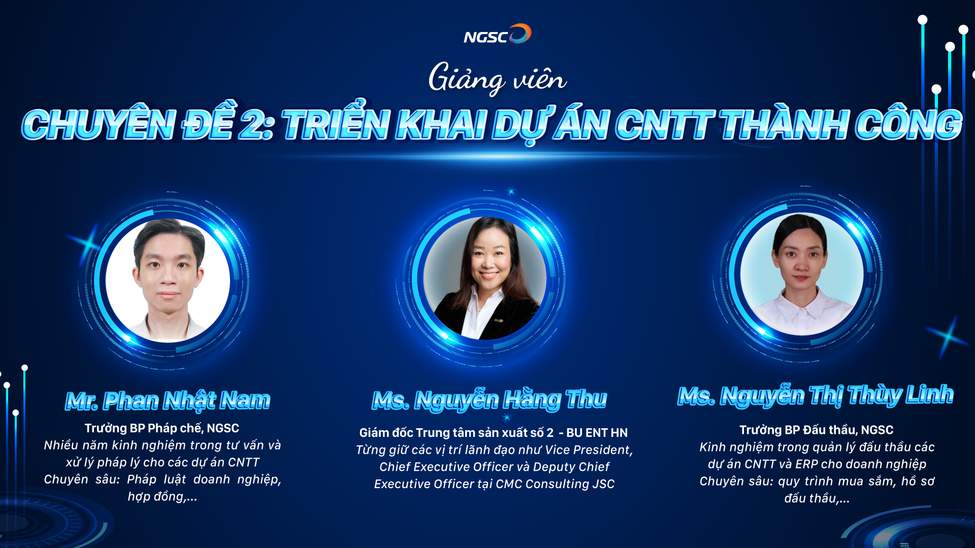 - Mr. Phan Nhật Nam – Trưởng phòng Legal, NGS – Chuyên gia pháp lý dự án CNTT, nhiều kinh nghiệm tư vấn hợp đồng và xử lý rủi ro pháp lý trong triển khai dự án.