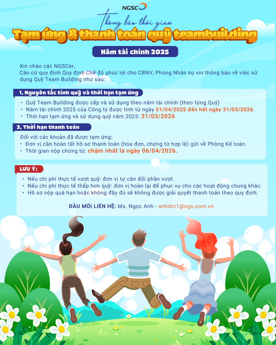 THÔNG BÁO THỜI GIAN TẠM ỨNG & THANH TOÁN QUỸ TEAMBUILDING - NĂM TÀI CHÍNH 2025